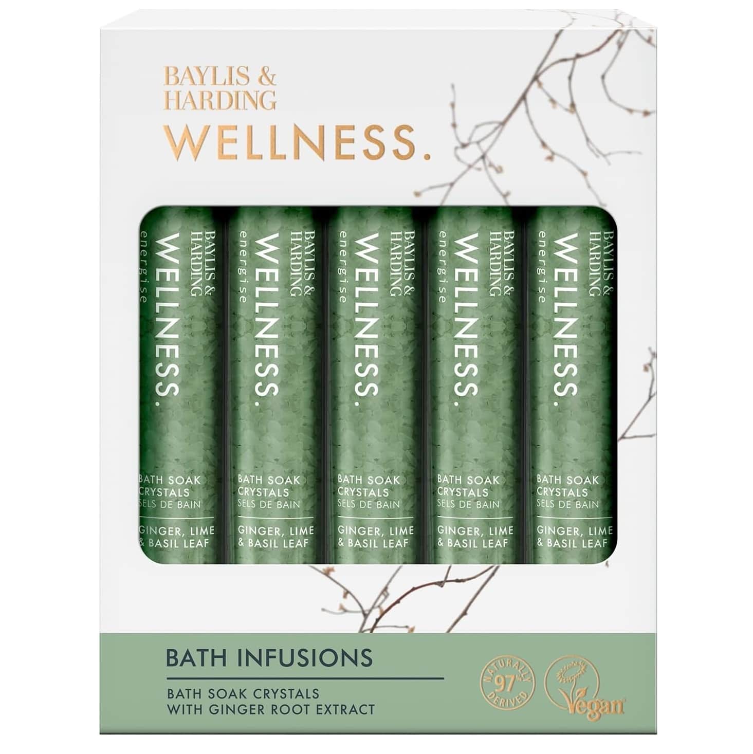 Baylis & Harding Dárková sada koupelových solí Wellness – 5 ks, zelená barva. Dopřejte si klid, rozjímání a voňavý požitek z koupele s touto sadou koupelových solí od britské značky Baylis & Harding. Krystalky soli koupel nádherně provoní.