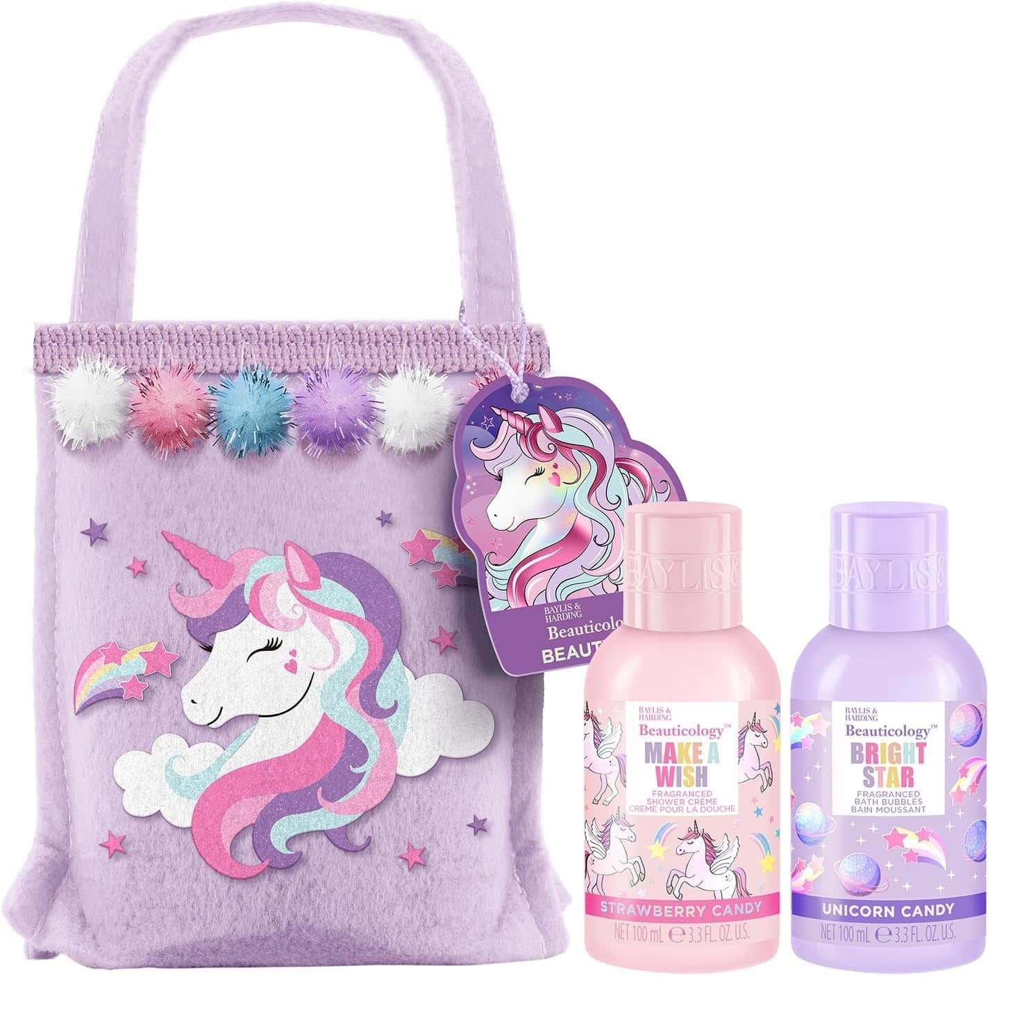 Miniatury kosmetiky jsou uloženy v malé bavlněné taštičce s roztomilým motivem jednorožce, kterou si děti zamilují. Můžou v ní nosit svého oblíbeného plyšáka, věci do cvičení nebo zájmového kroužku.