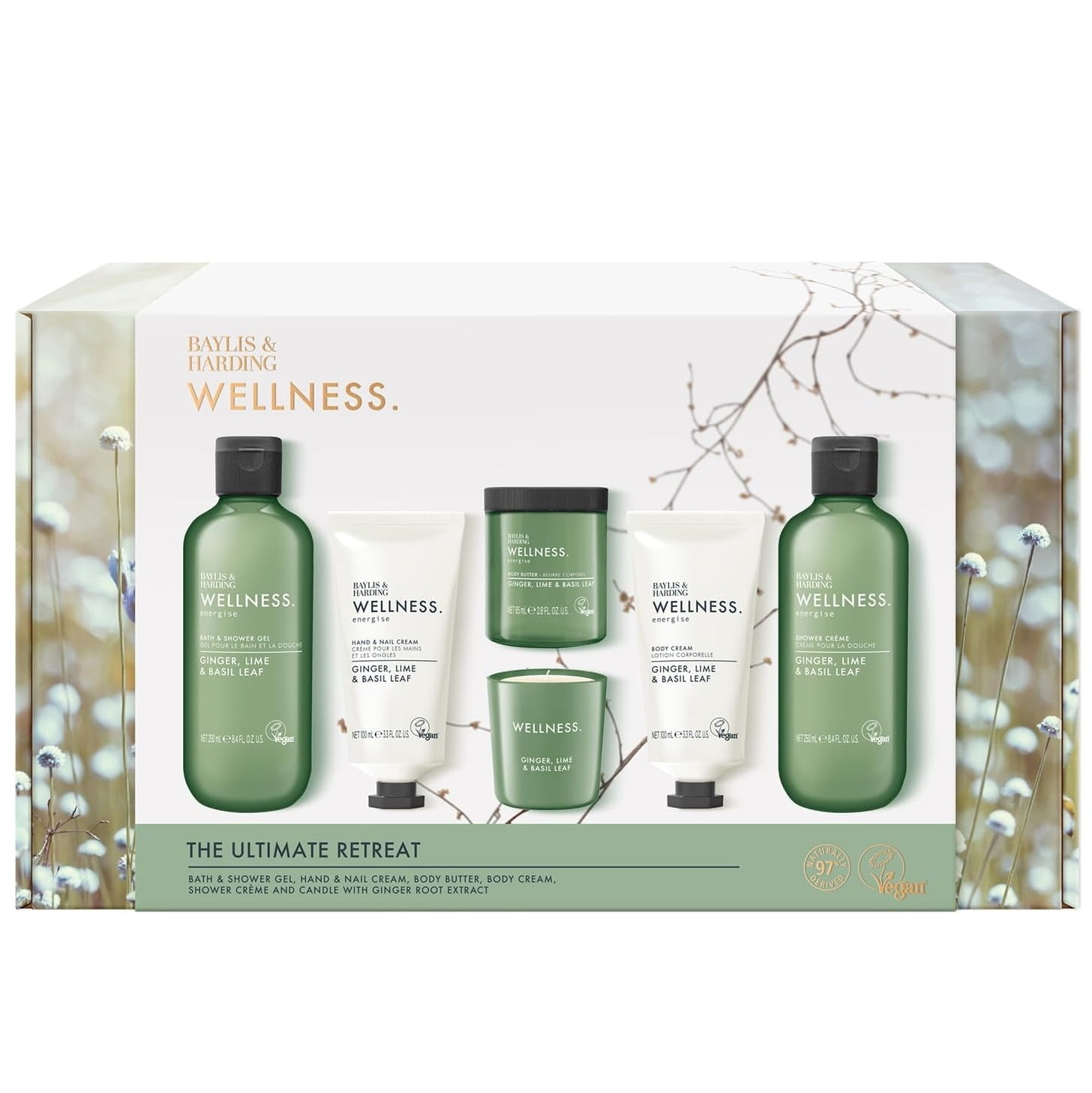 uklidňující vůní zázvoru, citrónu a bazalkových listů. Nádherná dárková sada se bude vyjímat v každé koupelně. Rozmazlujte svou pokožku těmito luxusními produkty, které nádherně provoní celou koupelnu a vaši pokožku zanechají