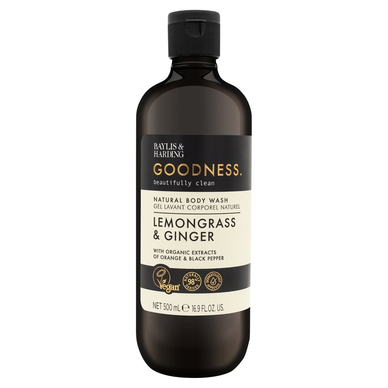Baylis & Harding Přírodní sprchový gel Goodness Lemongrass/Ginger 500 ml, hnědá barva, plast. Dopřejte si povzbuzující sprchu s tímto gelem od britské značky Baylis & Harding, se kterým bude každé mytí voňavým zážitkem!