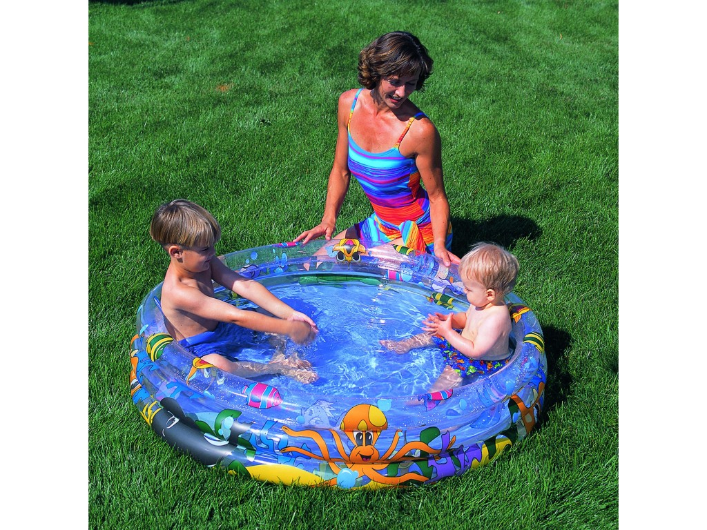 V horkých letních dnech není pro vaše nejmenší lepší osvěžení, než v nafukovacím bazénku! Bazének je vhodný jako brouzdaliště. Barevný tříkomorový nafukovací bazén, který se hodí na zahradu, kde udělá dětem jistě velkou radost. Podlaha z měkčeného PVC zabraňuje odření a působí protiskluzově. Rozměr bazénu: 102 x 25 cm Rozměr krabice: 29 x 25 x 4 cm Vhodné pro děti od 2 let