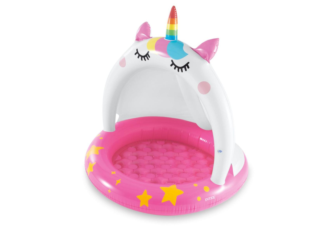Nafukovací bazének o objemu 45l vody se stříškou. Velikost bazénu přibližně 102×102cm. Nafukovací podlážka. Vyrobeno z testovaného masivního vinylu. Součástí balení je opravná sada.