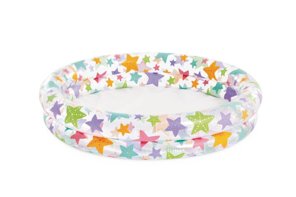 Nafukovací bazén pro děti od 2 let s motivem mořských hvězdic, kapacitou 150 L. Opravná sada je součástí balení.