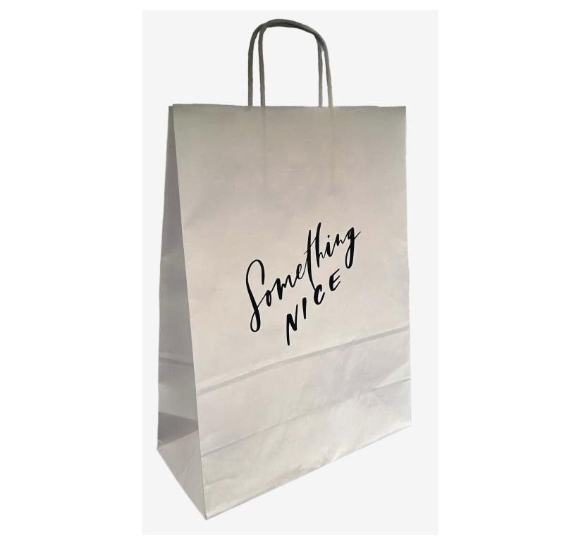 Nechcete prozradit co za dárek se uvnitř ukrývá? A co teprve kouzlo textu "Something nice"? Krásný dárek v taštičce není na první pohled vidět, ale taška jasně vyjádří duch dárku. Rozměry: 41 x 32 cm