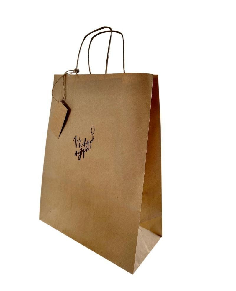 Be Nice přírodní dárková taška s nápisem Všechno nejlepší a se jmenovkou. Rozměry 32 x 41 cm