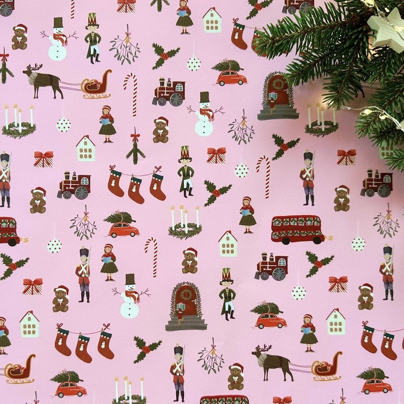 Be Nice EKO balicí papíry Anglická pohádka mají na spodní straně mřížku, pro snadné stříhání. Vánoční balicí papír Anglická pohádka ilustrovala česká výtvarnice Bára z Nikolajky.