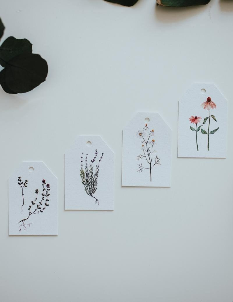 Be Nice EKO originální a ekologické jmenovky na dárky s motivem bylinek. Krásně doplní zabalený dárek a na druhou stranu jmenovky je možné vepsat jméno obdarovaného. Originální motivy vytvořila česká ilustrátorka Bára z Nikolajky.