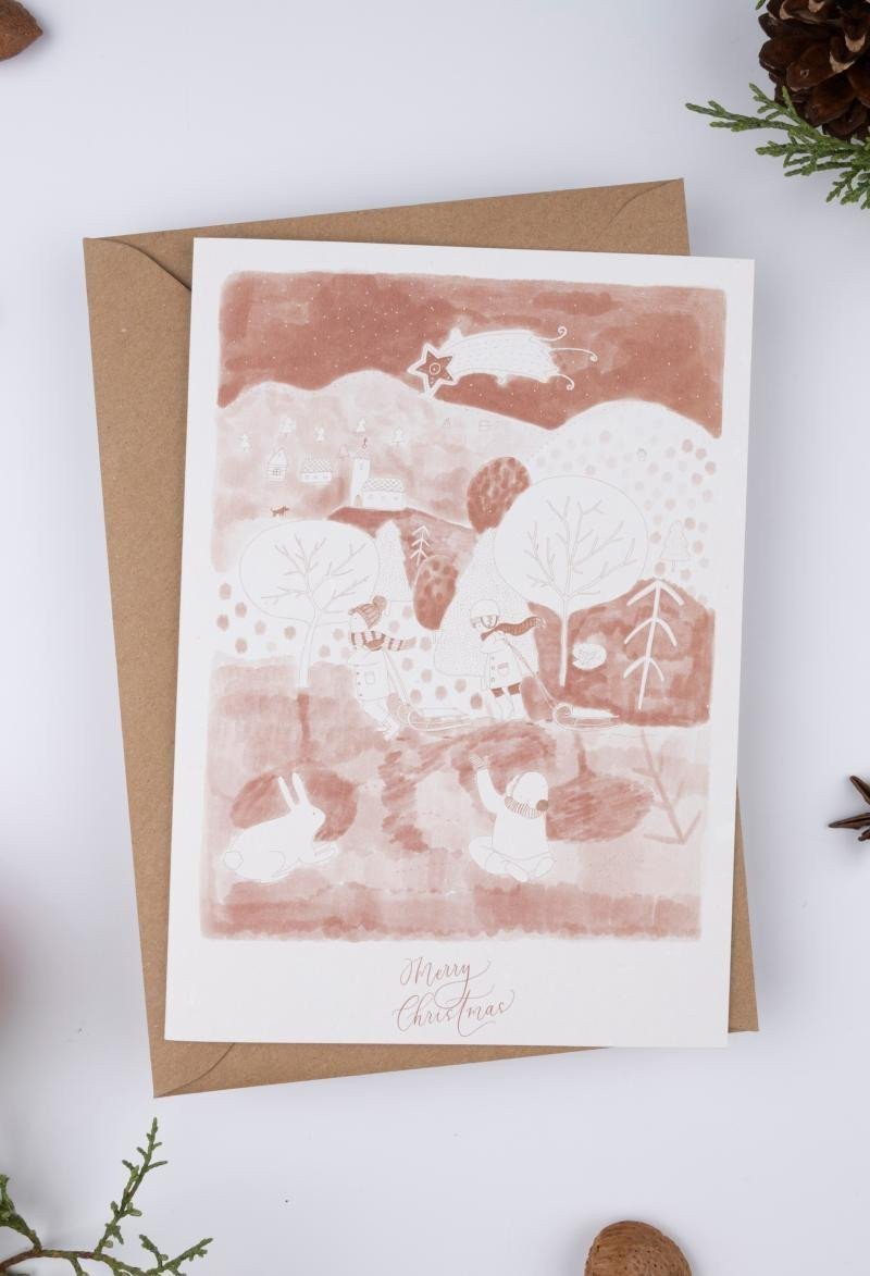 Be Nice EKO vánoční přání z recyklovaného papíru. Anglicky mluvící jistě potěší vánoční přání s textem Merry Christmas a kaligrafickým anglickým textem uvnitř. Vnitřní text: Peace, good will and happiness for you at Christmas and always. Přání ilustrovala a krasopisně nadepsala česká výtvarnice Bára z Nikolajky. Rozměr: 14,7 x 21 cm