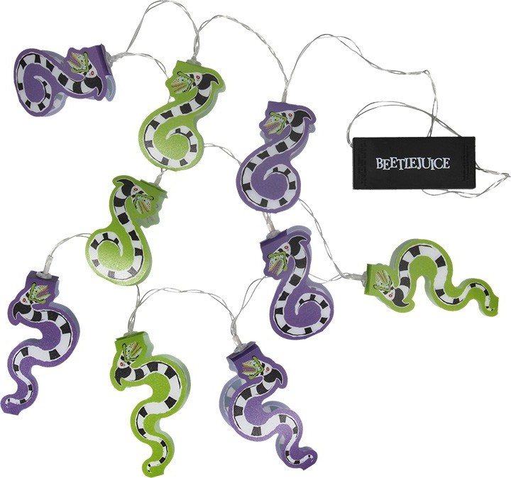 Světelný řetěz v oficiální licenci Beetlejuice. Řetěz je 130cm dlouhý a k provozu jsou potřeba 2× AA baterie, které nejsou součástí balení.