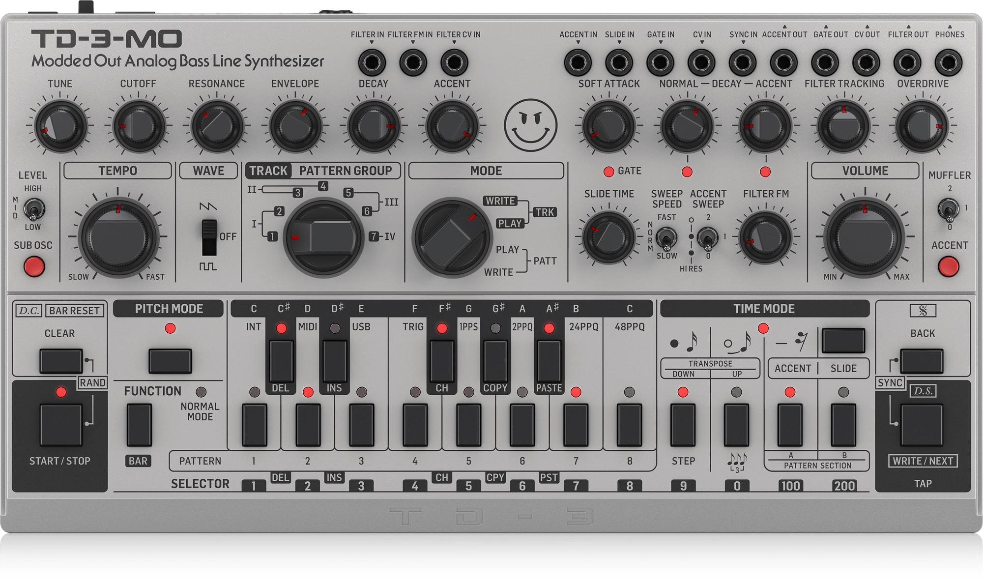 Basový syntezátor TD-3-MO je unikátní analogový basový syntezátor se semi-modulární konektivitou, velmi intuitivním ovládacím panelem a modifikovaným obvodem, který přináš více možností. Syntezátor je vhodný do nahrávacího studia nebo na live performance, kde posune vaše beaty a tracky na další level. TD-3 obsahuje autentický Vintage analogový oscilátor pro co nejoptimálnější využití, obsahuje VCO, VCA a VCF filtry, šestnáctikrokový sekvencer nebo distortion efekty, proto se stane bezednou studnou pro vaše