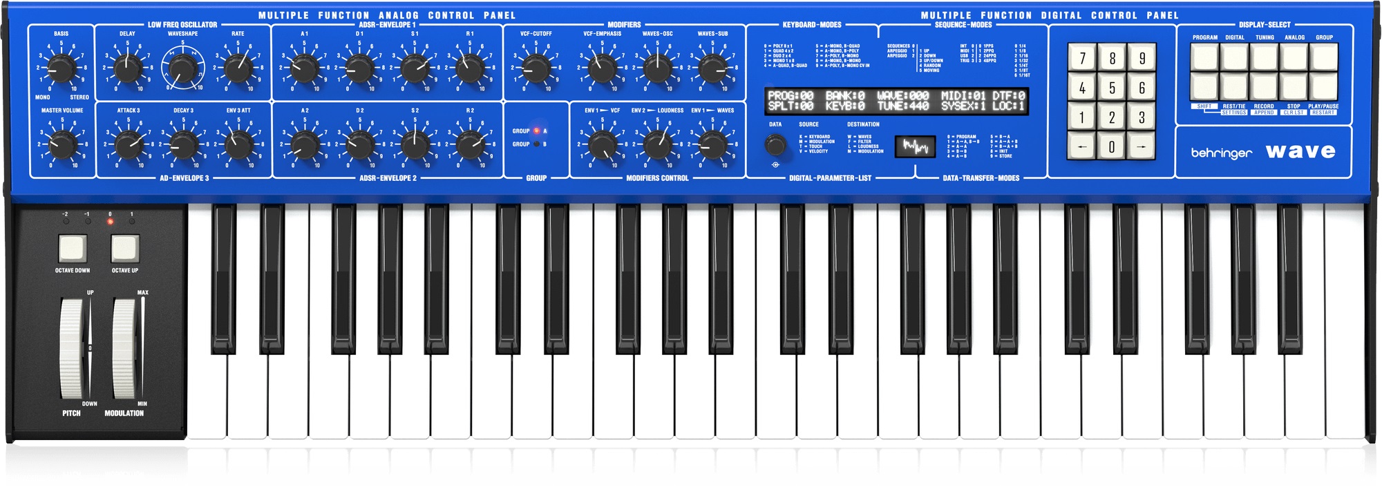 Syntezátor Neúnavný Uli Behringer přináší na trh další legendární syntezátor, jenž představuje charakteristický zvuk 80. let, který vás okamžitě spojí s tvorbou umělců jakými jsou a byli David Bowie, Jean Michel Jarre či Tangerine Dream. Behringer Wave je 8 hlasý multitimbrální hybridní syntezátor s Wavetable generátory, analogovými VCF a VCA, LFO, 3 obálkami, arpeggiatorem a sekvencerem. WAVE je úžasný pro tvorbu svěžích padů, basových partů a dokonce i zvonivých nebo gong