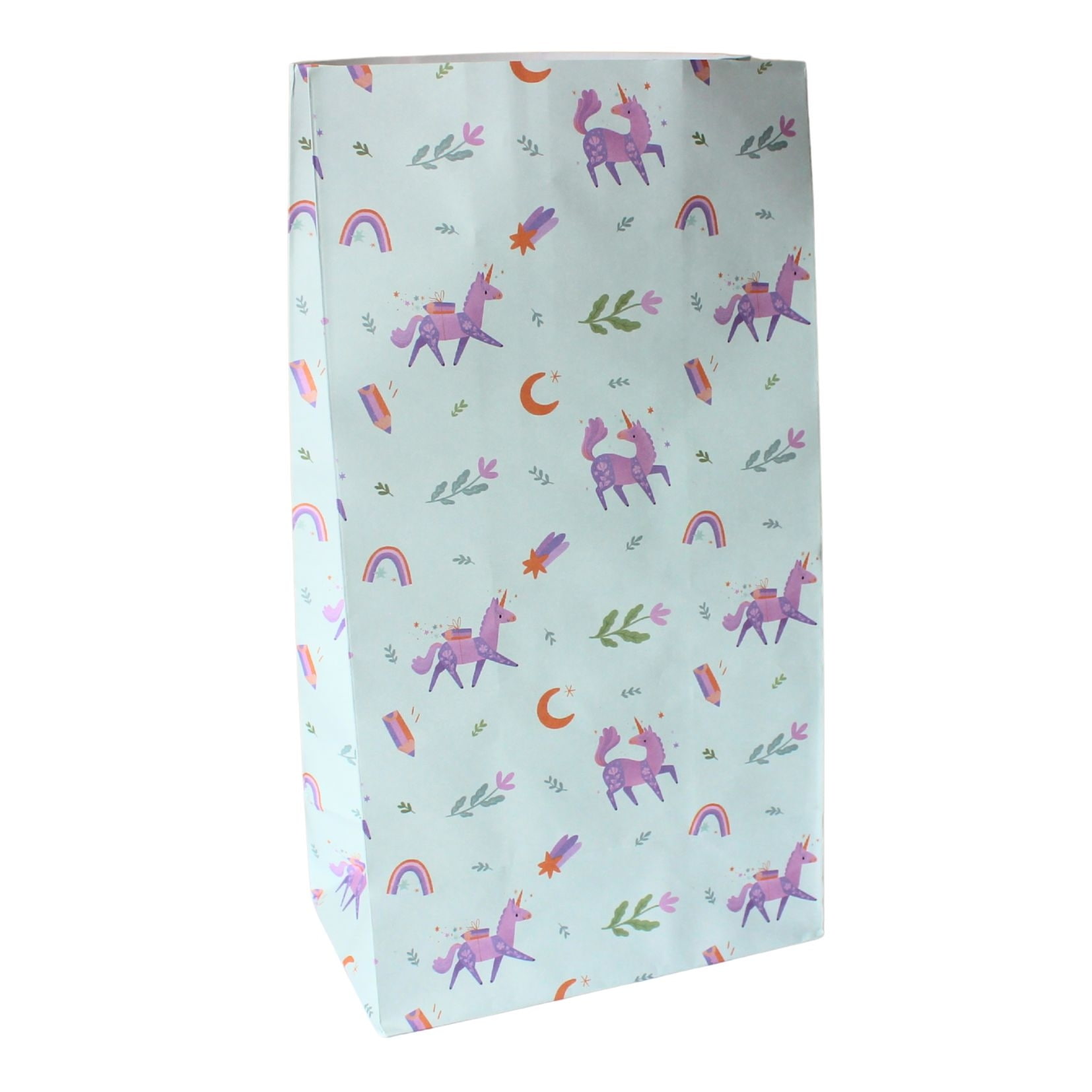 Papírový sáček na dárky je vyrobený z kvalitního papíru o gramáži 120 g/m², je proto dostatečně pevný a ukryje jakékoliv překvapení. Humorná ilustrace Emy Sazamy v čele s jednorožci potěší malé i větší děti.