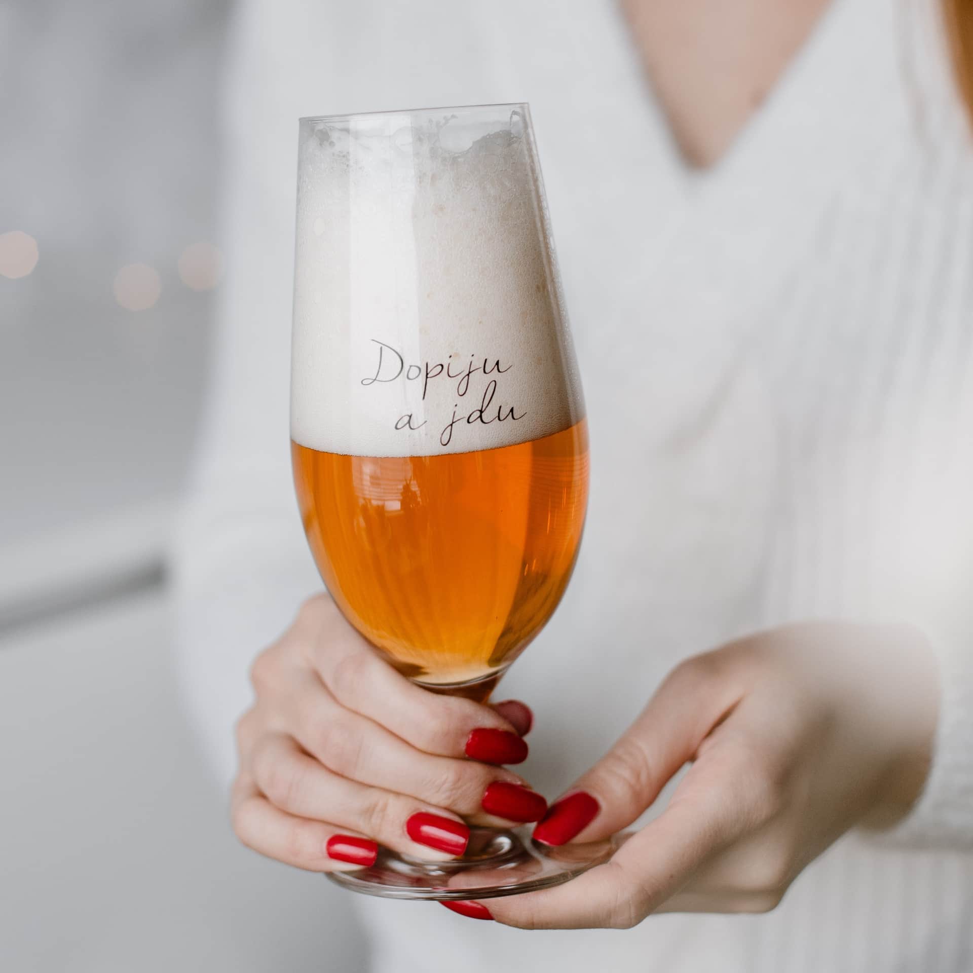 Elegantní skleničku na stopce na pivo zdobí jemný černý nápis Dopiju a jdu, který potěší všechny milovníky piva. Sklenice bude krásným dárkem k narozeninám pro kamarádku, kolegyni nebo třeba rodiče. Hodit se bude na pohodové večerní chvilky na terase nebo třeba ke grilování s přáteli. objem 460 ml / průměr 7,8 cm / výška 19,6 cm Vhodná do myčky nádobí.