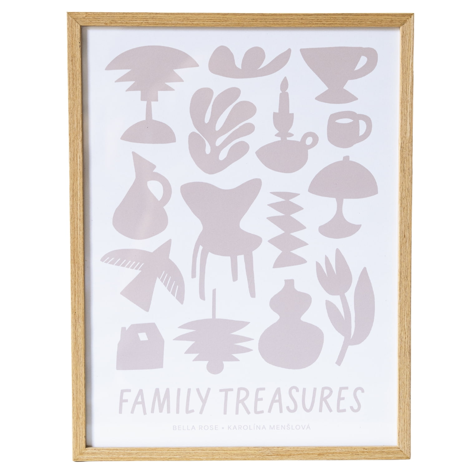 Plakát z kolekce Family Treasures je výrazným, a přesto přirozeným prvkem interiéru. Originální motiv v osobitém rukopisu Karolíny Menšlové minimalisticky vyobrazuje rodinné poklady a podtrhuje tak harmonickou atmosféru domova. Velký formát dává motivu vyniknout a stává se domestikovaným středobodem prostoru. Stejně jako celá kolekce i plakát krásně funguje v kombinaci s dalšími kousky i s těmi, které už doma dávno máte.