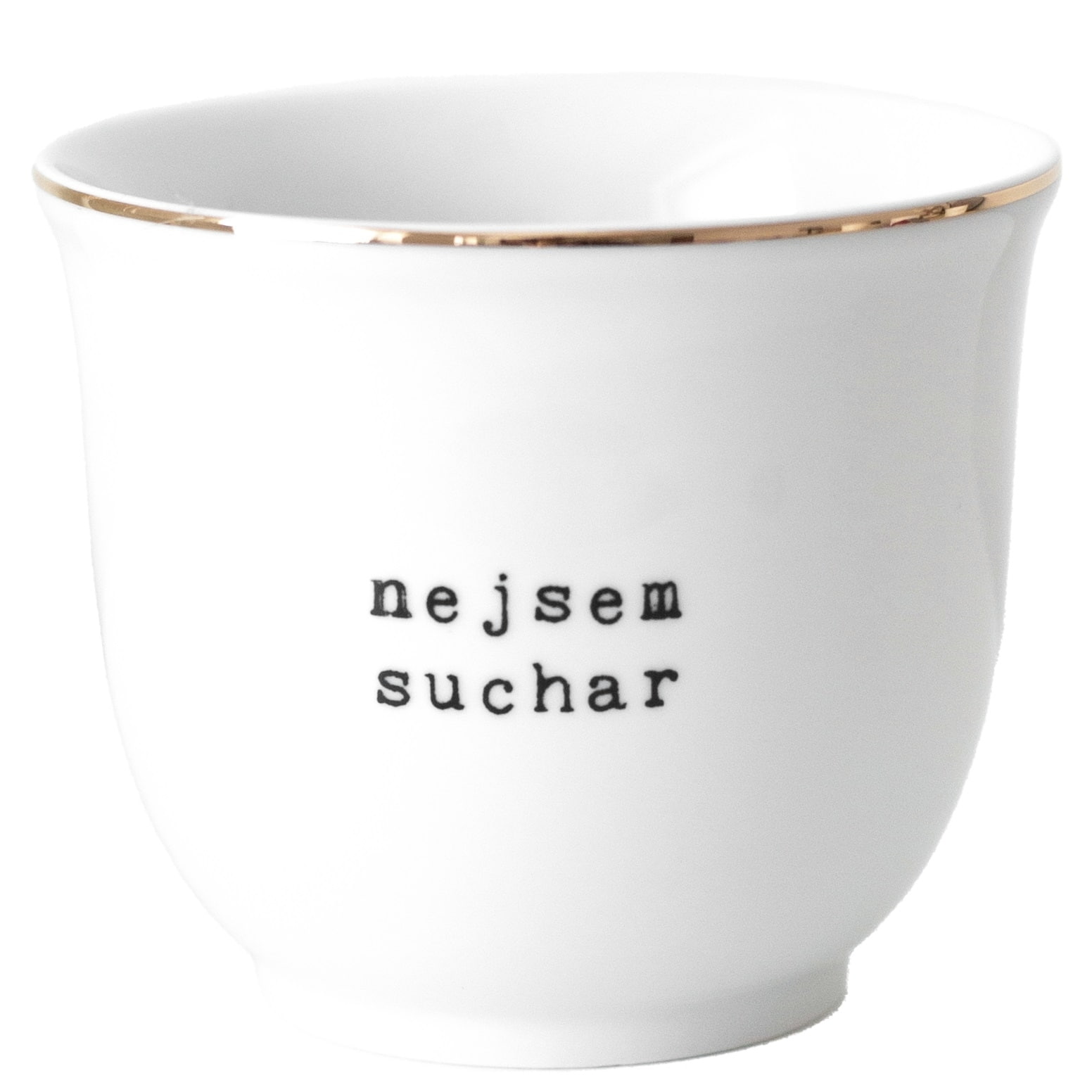 Porcelánový obal na květináč s černým nápisem "Nejsem suchar" bude ideálním dárkem pro všechny bojovníky za domácí zeleň. Bílý porcelán doplňuje nejen nápis, ale také zlatý okraj, díky němuž je zdobení minimalistické, přesto však elegantní.