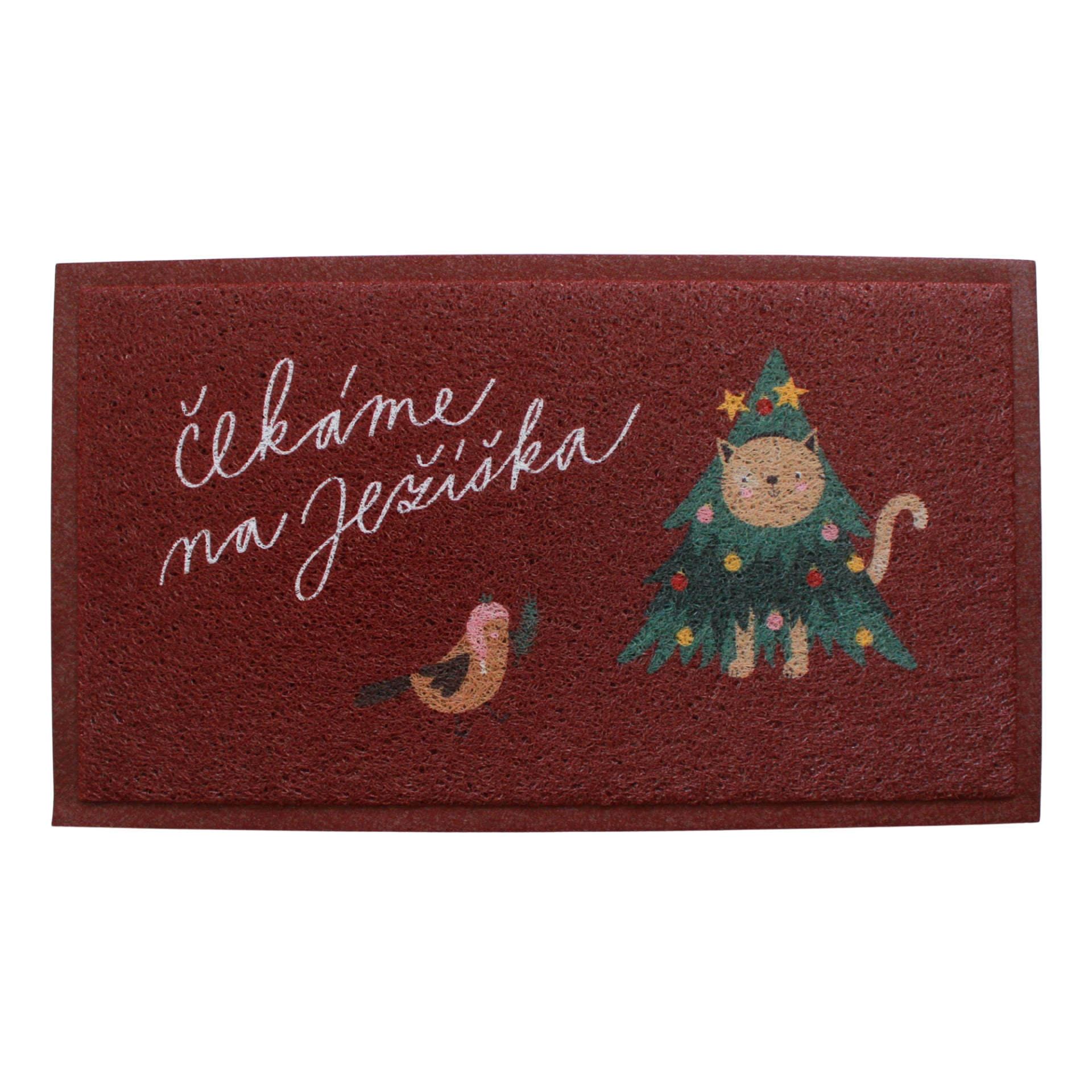 Bella Rose Rohožka Kočka čeká na Ježíška CZ, červená barva, plast. Zpříjemněte si čekání na Ježíška a pobavte návštěvu při vstupu. Sváteční rohožka z autorské kolekce Bella Rose pobaví a obměkčí srdce nejednoho vánočního Grinche.