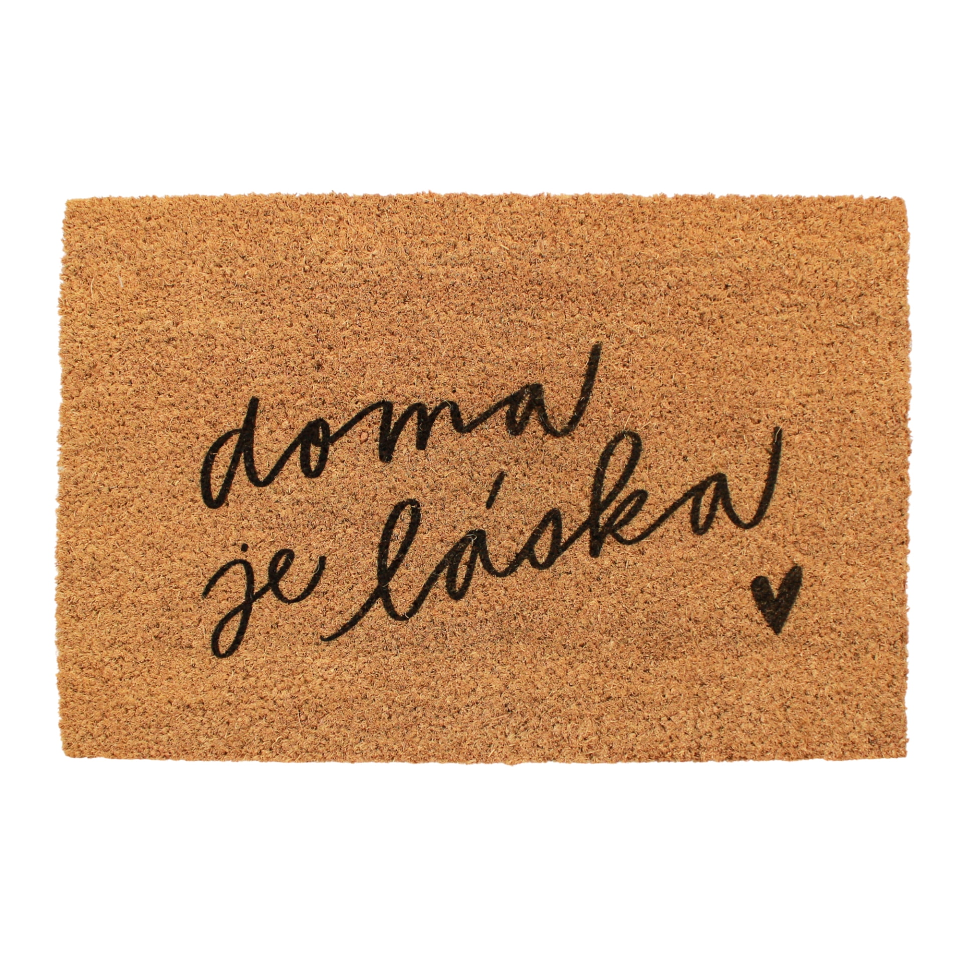 Bella Rose Rohožka z kokosových vláken Doma je láska, přírodní barva, proutí. Že je váš domov plný lásky dává vědět návštěvám krásná rozhožka z autorské kolekce Bella Rose. Originální rohožku zdobí nápis černou linkou – Doma je láska– z pera moderní krasopisky Zuzky Bartíkové alias Flatwhite Lettering.