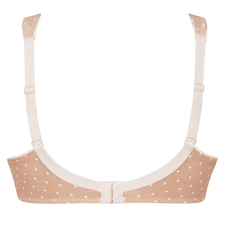 Pohodlná, měkká podprsenka Anita bez kostic, vyrobená z měkkého a prodyšného mikrovlákna s potiskem imitujícím krajku. Odlehčuje oblast ramen a krku a zajišťuje nejvyšší pohodlí. Trojdílná konstrukce košíčků s bočními lištami dokonale tvaruje poprsí. Výrobek byl testován na škodlivé látky a byl mu udělen mezinárodní certifikát Oeko-Tex - TRUSTED TEXTILES. - "prodyšné" mikrovlákno příjemné na tělo - potisk imitující krajku dodává lehkost - mikrovlákno s tvarovacími vlastnostmi - rychleschnoucí - zajišťuje rychlý odvod vlhkosti - pro větší pohodlí na boční straně těla zakončené měkkým fleecem. Košíčky: - díky zcela hladkému mikrovláknu jsou košíčky neviditelné pod přiléhavým oblečením a krásný dekorativní potisk dodává podprsence na atraktivitě. - třídílná konstrukce košíčků optimálně tvaruje poprsí - ploché švy zvyšují pohodlí při nošení - košíček ve spodní části vyztužený další vrstvou látky, která zajišťuje dokonalou oporu prsou. - boční pruh spojený s ramenním popruhem jemně shromažďuje prsa. - boční lišta dodatečně vyztužená zevnitř - poskytuje dokonalou oporu Ramínka: - ulevují oblasti ramen a krku - nastavitelná, širší pro větší velikosti - pohodlná, měkce lemovaná v oblasti ramen. - Snížená elasticita - poskytuje stabilní podporu poprsí - regulátory neobsahují nikl Zadní část: - širší pro větší velikosti - vyztužené tkaninou se sníženou elasticitou - Třístupňové nastavení Materiálové složení: 82% Polyamid, 18% Elastan