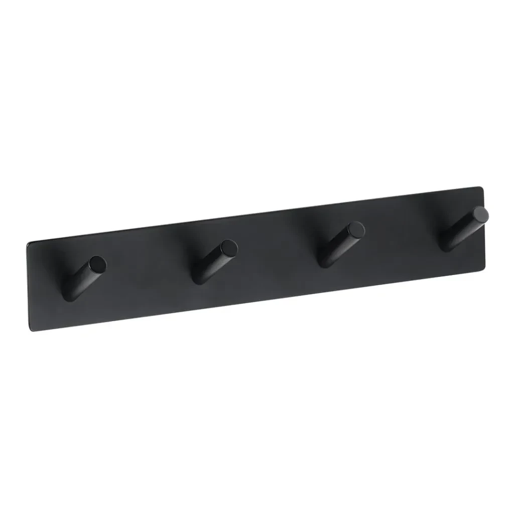 BEMETA EASY věšák se 4 háčky černý 163106290 Povrchová úprava Lak Barva Černá Hmotnost 0.262 kg Hloubka 38 mm Šířka 255 mm Výška 45 mm Každý produkt je vyroben ze speciálního odlehčeného materiálu a opatřen páskou s lepidlem. Stačí nalepit a máte hotovo ! Nebo dokoupit sadu lepidla 199352010