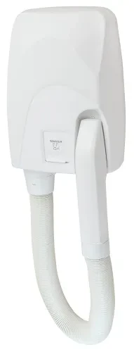 Hotelový vysoušeč vlasů, v bílé barvě. teplota vzduchu 60oC rychlost vzduchu 18 m/s Parametry: rozměry: 180 x 370 x 120 mm příkon: 550 - 1100W hlasitost: 68dB napětí: 220V