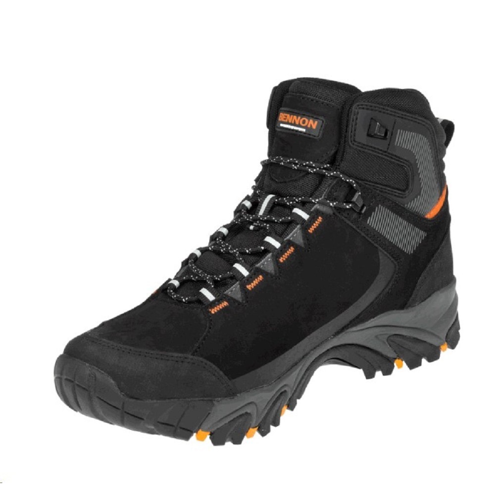 Obuv BENN HOMBRE unisex trekové kotníkové na vibramu sympatex černé • Klasická treková obuv kotníkového střihu určená k celoročnímu použití v náročných venkovních terénech. • SVRŠEK - kvalitní hovězinová useň NUBUK s hydrofobní úpravou tl. 2,0-2,2 mm. Velmi pevně drží kotník. Kombinace stability, pevnosti a podpory paty. • PODŠÍVKA - SYMPATEX® značková nepromokavá a prodyšná membrána. • PODEŠEV - VIBRAM® – New Bifi da: značková, kvalitní oděruvzdorná a olejivzdorná pryž s protiskluzným dezénem. Dokonale chrání chodidlo při pohybu v těžkém terénu. • SYSTÉM ŠNĚROVÁNÍ - Dvojitý bezpečnostní šněrovací systém: hladká průběžná očka s ložiskovou kuličkou na nártu v kombinaci s háčky na kotnících, které rychle a přesně fixují nohu. • Velikost 36-49