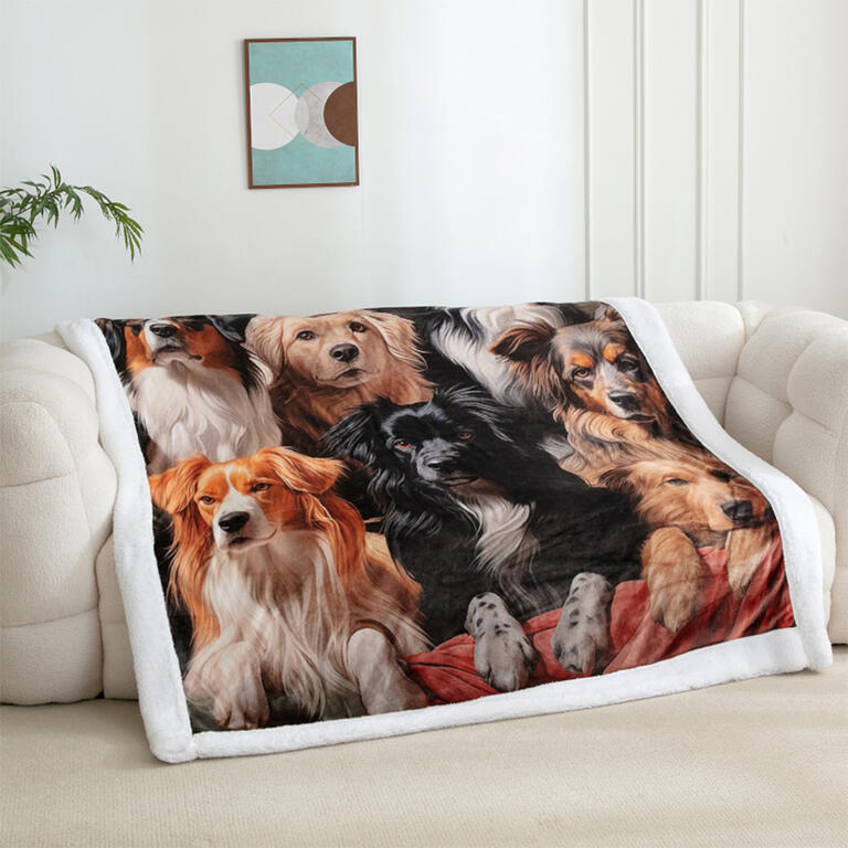 Design této deky je k neodolání pro všechny milovníky psů a pejsků všech barev a velikostí! Zadní strana je jednobarevná a ladí tak s každým interiérem. Deku korunuje 8 cm široký beránkový lem pro elegantní vzhled, který zajišťuje tvarovou stálost deky.