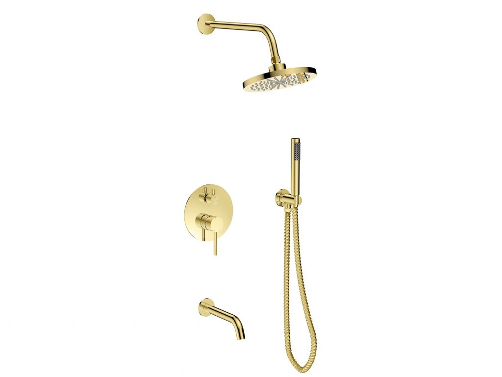 Jedinečný podomítkový set s příslušenstvím VEO zlatá lesklá barva. Kompletní řešení pro vaši vanu. Set obsahuje podomítkovou baterii (box), vývod ze stěny s držákem, včetně ruční sprchy a hadice, dále držák a kulatou hlavovou sprchu a v neposlední řadě praktický stěnový vývod. Baterie je dodávána včetně podomítkového modulu (boxu), ten výrazně usnadňuje vlastní montáž. Dodáváme v šesti barvách a to lesklý chrom, černá, grafitová, zlatá, zlatá lesklá, zlatá broušená.Součástí balení je podomítková baterie VEO chrom je podomítkový montážní box + ruční sprcha + sprchová hadice + vývod a držák ruční sprchy + držák a hlavová sprcha + stěnový vývod. Přednosti podomítkové baterie VEO zlatá lesklá barva: Podomítková baterie s příslušenstvím Barva: zlatá lesklá barva Elegantní klasika Anti line aretator (proti usazování vodního kamene) Moderní perlátor NEOPERL Keramická kartuše KEROX Sprchová hadice odolná proti kroucení Prověřená technologie Pákové ovládání baterie Vše testováno se 100% úspěšností Všechny díly odpovídají předpisům EN817 Včetně podomítkového modulu (boxu) Set obsahuje podomítkovou baterii, vývod ze stěny s držákem, včetně ruční sprchy a hadice, dále držák a kulatou hlavovou sprchu a stěnový vývod ZÁRUKA 5 LET