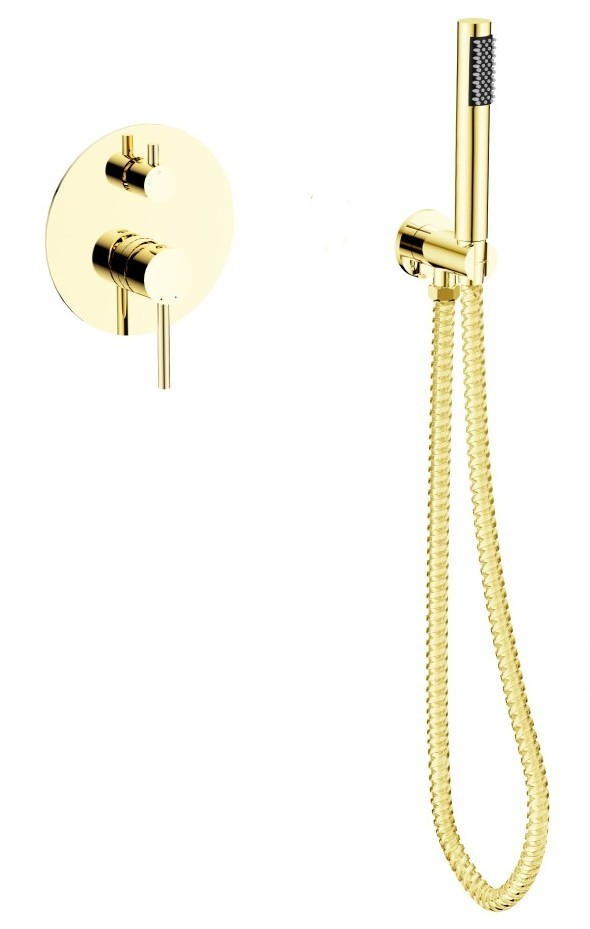 Jedinečný sprchový/vanový podomítkový set s příslušenstvím VEO ve zlaté lesklé barvě. Kompletní řešení pro vaši vanu. Set obsahuje podomítkovou baterii, vývod ze stěny s držákem, ruční sprchu a hadici. Baterie je dodávána včetně podomítkového modulu, ten výrazně usnadňuje montáž. Dodáváme v pěti barvách chrom, černá, grafitová, zlatá a zlatá jasná.Spojením současného minimalismu s klasickými detaily vznikla série baterií VEO. Součástí balení VEO zlatá lesklá barva je podomítková baterie VEO + podomítkový modul + ruční sprcha + sprchová hadice + vývod a držák ruční sprchy. Přednosti podomítkové baterie VEO černá: Barva: zlatá lesklá Podomítková sprchová/vanová baterie s příslušenstvím Elegantní klasika Anti line aretator (proti usazování vodního kamene) Moderní perlátor NEOPERL Keramická kartuše KEROX Sprchová hadice odolná proti přetočení Kvalitní přepínač sprchy / vany Prověřená technologie Pákové ovládání baterie Vše testováno se 100% úspěšností Všechny díly odpovídají předpisům EN817 Včetně podomítkového modulu Set obsahuje podomítkovou baterii, vývod ze stěny s držákem, ruční sprchu a hadici POZOR - Sprchové a vanové baterie lze používat pouze s dodatečnou instalací dílu – zpětné klapky, která zabraňuje zpětnému nasátí vody a tím znečištění vodovodního řádu. ZÁRUKA 5 LET