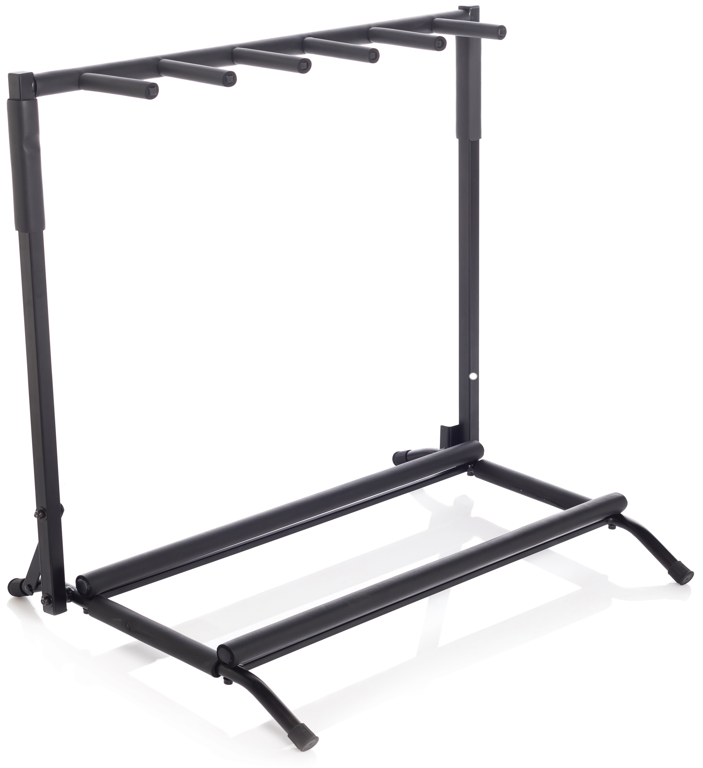 Stojan pro více nástrojů Tento stojan pojme pětici ukulele – nezáleží, zda máte sopránový, koncertní, tenorový či barytonový nástroj, díky štědře dimenzovaným rozměrům snadno uložíte nástroje všech typů. Pevná kovová konstrukce je chráněna měkkou pěnovou gumou, poškrábání laku ukulele tedy zaručeně nehrozí.