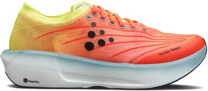 Dámská silniční bota CRAFT Nordlite Tempo je určena primárně pro ty, kdo hledají maximální rychlost, stabilitu a zároveň tlumení. Bota využívá novou pěnu v mezipodešvi Cr Foam Pro™. Ta kombinuje dusíkovou pěnu s Pebaxem (15 %), což vytváří skvělou kombinaci vysoké stability, optimální míry tlumení a maximální síly do odrazu. To vše při zachování minimální váhy. Podešev využívá směs HyperGrip™, která zajistí jistý grip na silnici. Velmi lehký jednovrstvý svršek, zpevněný TPU je maximálně prodyšný, ale také odolný a zároveň pohodlný. Váha: 275 g (UK8)Výška tlumení v patě: 40 mmVýška tlumení ve špičce: 34 mmDrop: 6 mmTechnologie Cr Foam Pro™ staví na základech uznávané Cr Foam™. Nová verze Pro redefinuje hranice rychlosti a pohodlí. Tím, že jsme do naší osvědčené superkritické pěny přidali 15 % Pebaxu, jsme vytvořili Cr Foam Pro™, která je lehčí a citlivější než kdykoli předtím. Tato inovativní směs přináší bezkonkurenční běžecký zážitek s vynikajícím návratem energie při každém kroku. Přídání Pebaxu nejen zvyšuje pružnost pěny, ale také její trvanlivost, což vám umožňuje zrychlit tempo při zachování pohodlí a stability potřebné pro různě dlouhé tréninky či závody. Craft prostřednictvím Cr Foam Pro™ vytvořil pěnu, která splňuje náročné požadavky každodenních i elitních běžců. Zažijte evoluci výkonu s Cr Foam Pro™—kde vás nejnovější technologie pěn vynesou k novým výškám, vyšším rychlostem a větším úspěchům.
