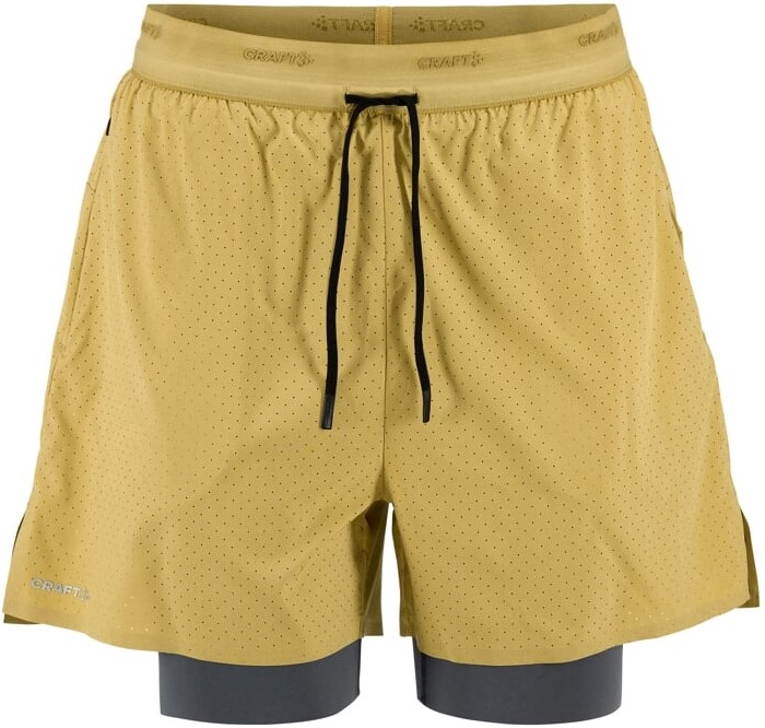 Šortky CRAFT Hypervent 2-in-1 jsou skvělou volbou pro širkou škálu sportovních aktivit. Technicky propracované šortky jsou po celé ploše perforované, což pomáhá efektivnímu odvodu vlhkosti a celkové prodyšnosti. Vnitřní elastické šortky bezpečně drží na svém místě. Komfort a volnost pohybu podporují rozparky po stranách vnějších šortek.Materiál: vnější šortky - 90 % recyklovaný polyester, 10 % elastan; vnitřní šortky - 70 % recyklovaný polyamid, 30 % elastan- lehký strečový materiál vnějších šortek s perforací po celé ploše- tenké elastické vnitřní šortky- guma v pase s možností stažení šňůrkou- rozparky po stranách pro větší volnost pohybu- po stranách vnějších šortek kapsy na zip- dvě kapsy na vnitřních šortkách- délka vnitřní nohavičky 23 cm (velikost M)