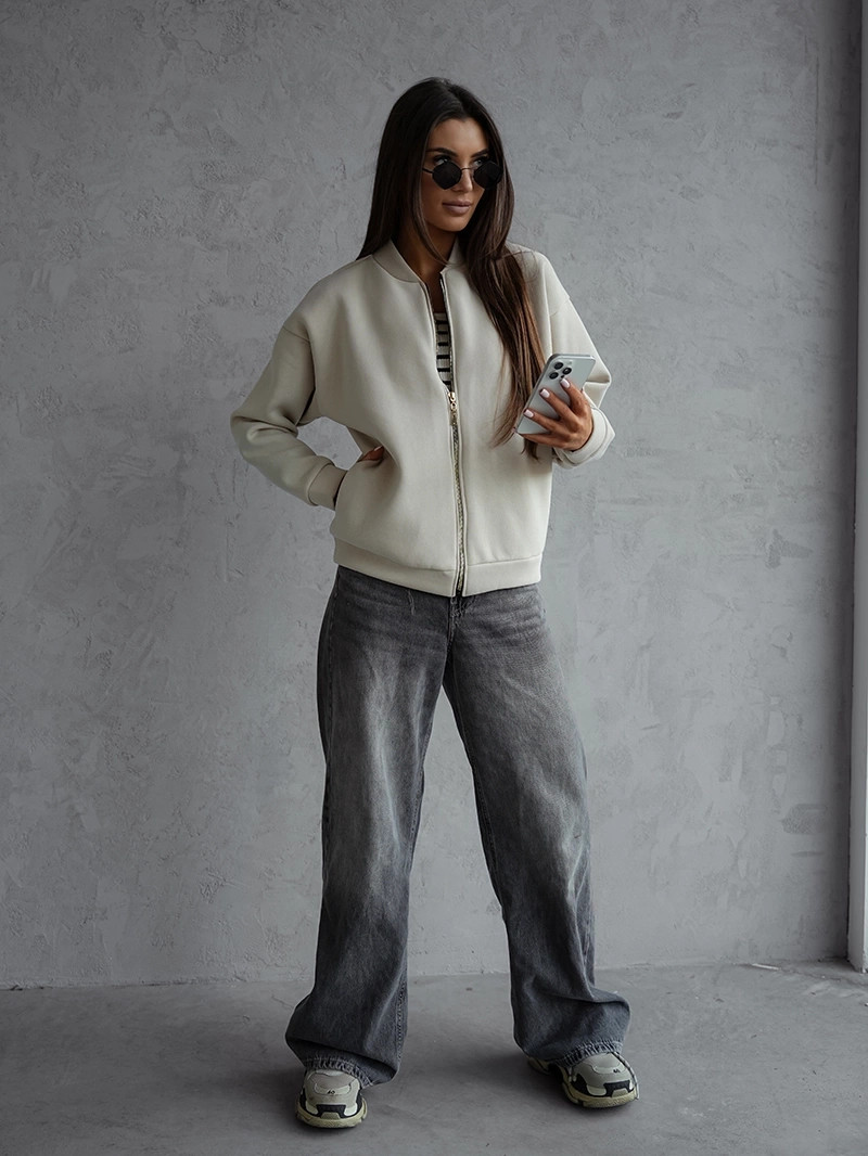 Věnujte prosím pozornost při výběru velikosti dle velikostní tabulky uvedené níže. Velikosti neodpovídají běžně nošené konfekci. Mikina s mechovitou kožešinou uvnitř Mikina má nízký stojáček, dlouhé rukávy, dvě kapsy a zapíná se stříbrným zipem. Model je olemovaný stahovacími lemy. Mikina má délku k bokům. Složení: 95 % bavlna, 5 % elastan. Mikina je polským výrobkem.
