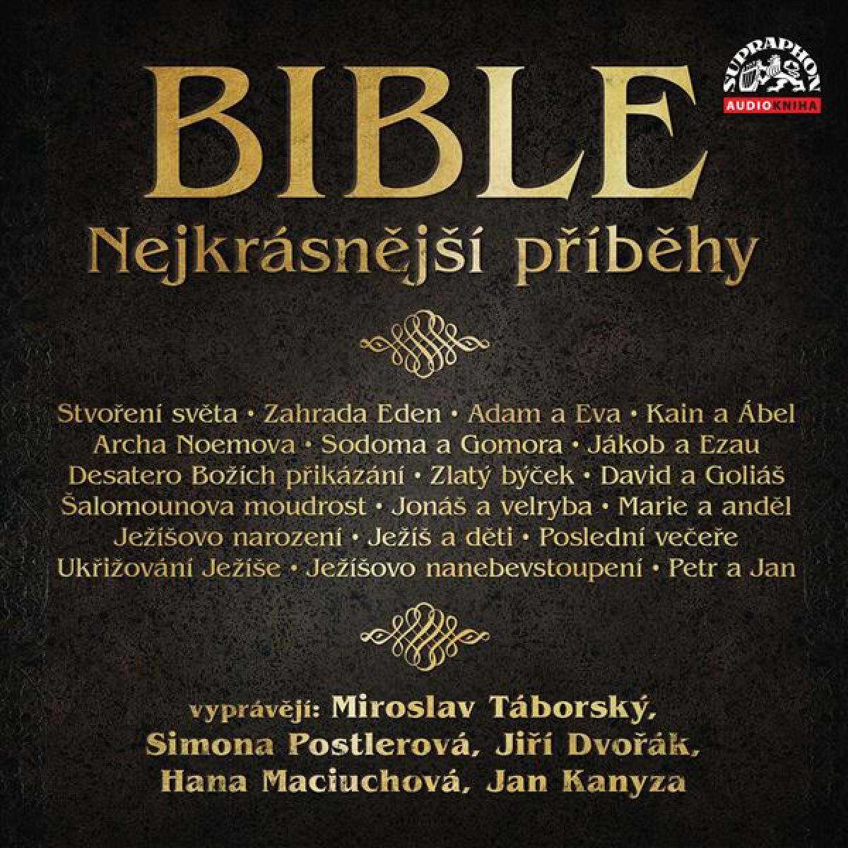 Audiokniha: Nejkrásnější a nejznámější biblické příběhy v podání vynikajících českých herců. Texty jsou zpracovány do formy vyprávění, které je poutavé, srozumitelné a přístupné malým i velkým posluchačům. Současný jazyk, excelentní interpretace a hudební doprovod se dobře poslouchají a mají šanci zaujmout i ty, kteří se s Biblí dosud nesetkali. Bible je zdrojem hodnot naší civilizace a přináší nám morální a mravní poselství trvale platné i pro současnou dobu. Stále z ní čerpáme myšlenky a poučení. 43 příběhů této audioknihy má optimální délku pro to, aby udržela zájem a pozornost každého posluchače.