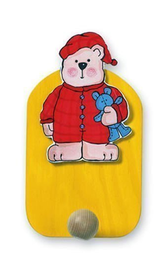 Dřevěný věšák jako dekorace do každého dětského pokojíčku, s barevným obrázkem medvídka připraveného ke spánku. Doporučujeme kombinovat s věšákem s obrázkem spícího medvídka (27192) . rozměry: 10x5x16 cm