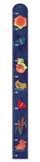 98,5 cm dlouhý dřevěný metr na zeď, nezbytný doplněk každého dětského pokojíčku s aplikacemí letního rybníčku, modrý, šířka 9,5 cm, s vyznačením do 160 cm výšky.