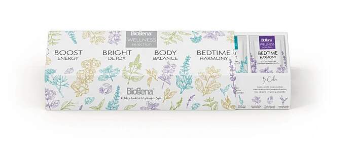 Biogena Wellness selection (4x10 ks) Dárková kazeta bylinných čajových rituálů pro tělo i duši Biogena Wellness Selection. Objevte čtyři cesty k vnitřní rovnováze v jediné elegantní kazetě. Biogena Wellness je kolekce čajových směsí, které Vás provedou dnem od osvěžujícího rána až po klidný večer. Každý šálek je jako malý rituál – pro tělo, mysl i smysly. Wellness DetoxZačněte den lehce a svěže! Kombinace máty, kopřivy a yerby maté jemně nastartuje přirozené očistné procesy a přinese lehkost do každého kroku. Wellness Body BalanceHarmonizujte své zažívání a nalaďte vnitřní rovnováhu díky citrusové kombinaci s meduňkou, fenyklem a šalvějí. Ideální po jídle i kdykoliv během dne. Wellness BoostKdyž potřebujete nakopnout a dodat energii, sáhněte po směsi se zeleným čajem, guaranou a yerbou maté. Povzbudí, osvěží a pomůže Vám zvládnout i to nejnáročnější tempo. Wellness Bedtime HarmonyNa závěr dne si dopřejte zklidnění a relax s meduňkou, levandulí a třezalkou. Jemná bylinná směs, která Vás pohladí po duši a připraví na nerušený spánek. Kazeta Biogena Wellness je skvělým dárkem pro každého, kdo hledá rovnováhu, sílu a klid v každodenním shonu. Nebo jako pozornost pro sebe, protože péče o sebe je ten nejlepší zvyk.