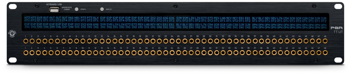Profesionální patchbay s displejem určený k propojování přístrojů a kabelových rozvodů pomocí konektorů TT 4,4 mm (bantam jack) a DB25