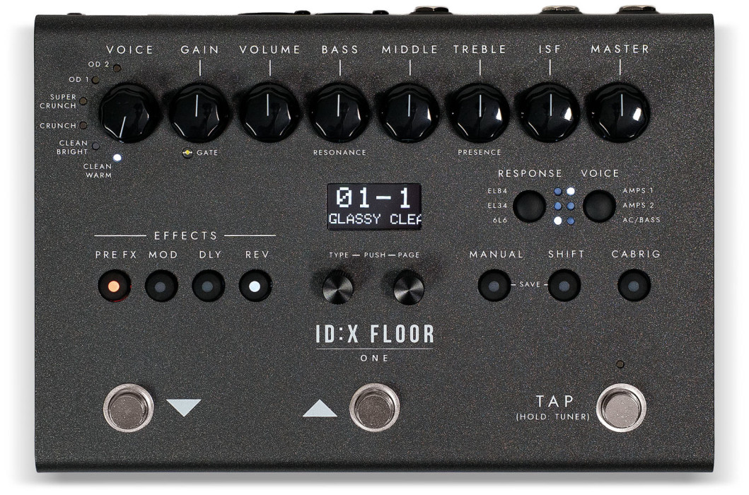 DSP modelovací procesor pro elektrické, baskytarové a akustické kytary, připojení USB-C, OLED displej, stereo XLR výstupy, výstup pro sluchátka