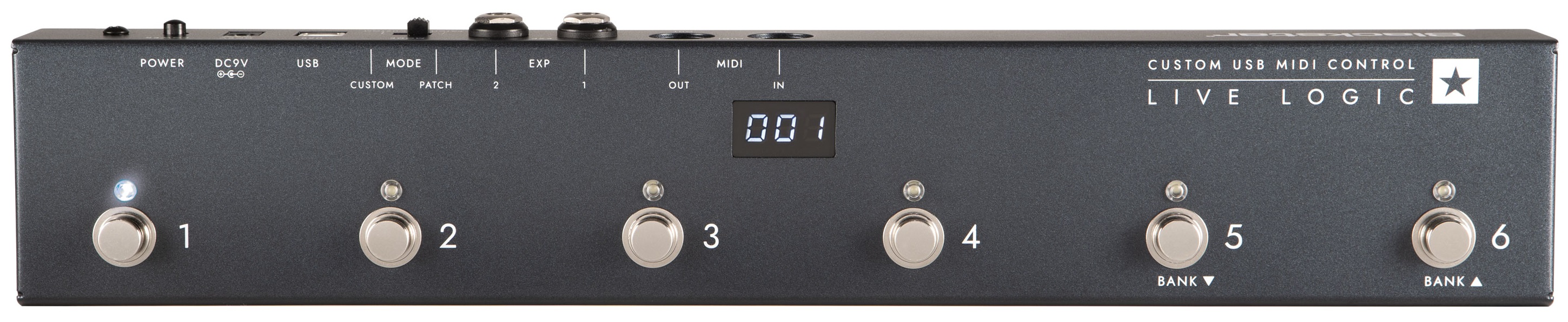MIDI přepínač Blackstar Live Logic je všestranný MIDI přepínač, pomocí kterého budete rychle a jednoduše ovládat MID zařízení, software či pluginy. MIDI over USB, přiřaditelné funkce a dva vstupy pro expression pedály dělají z Live Logic ideální MIDI kontroler i USB MIDI rozhraní. Výhodou je i flexibilní napájení, kdy můžete volit mezi USB, 9V baterií nebo napájecím zdrojem. Přizpůsobení kontroleru vašim potřebám je díky volně dostupné aplikaci pro PC/Mac maximálně snadné – jednoduše customizujete funkci ka