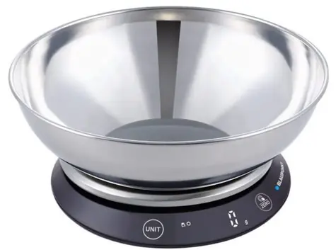 BLAUPUNKT FKS602 střibrná / kuchyňská váha s ocelovou mísou / přesnost na 1g / maximální nosnost 5 kg