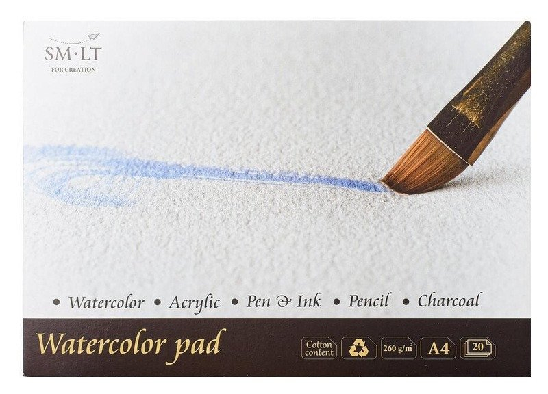 Tradičně vyráběný akvarelový blok z bílého papíru. Lisováno za studena. Formát A4, obsahuje 20 listů o gramáži 260 g/m2. Papír je recyklovaný, ale obsahuje bavlnu. S tvrdým zadním obalem. Nejlepší pro akvarel, akryl, tuš, pero, tužku, uhel.