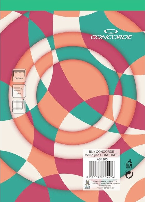 Lepený blok s perforací ve formátu A5, čtvereček. Obsahuje 50 listů bezdřevého bílého papíru o gramáži 55 g/m2. Má atraktivní design a zelený hřbet, který označuje čtverečkovaný blok.