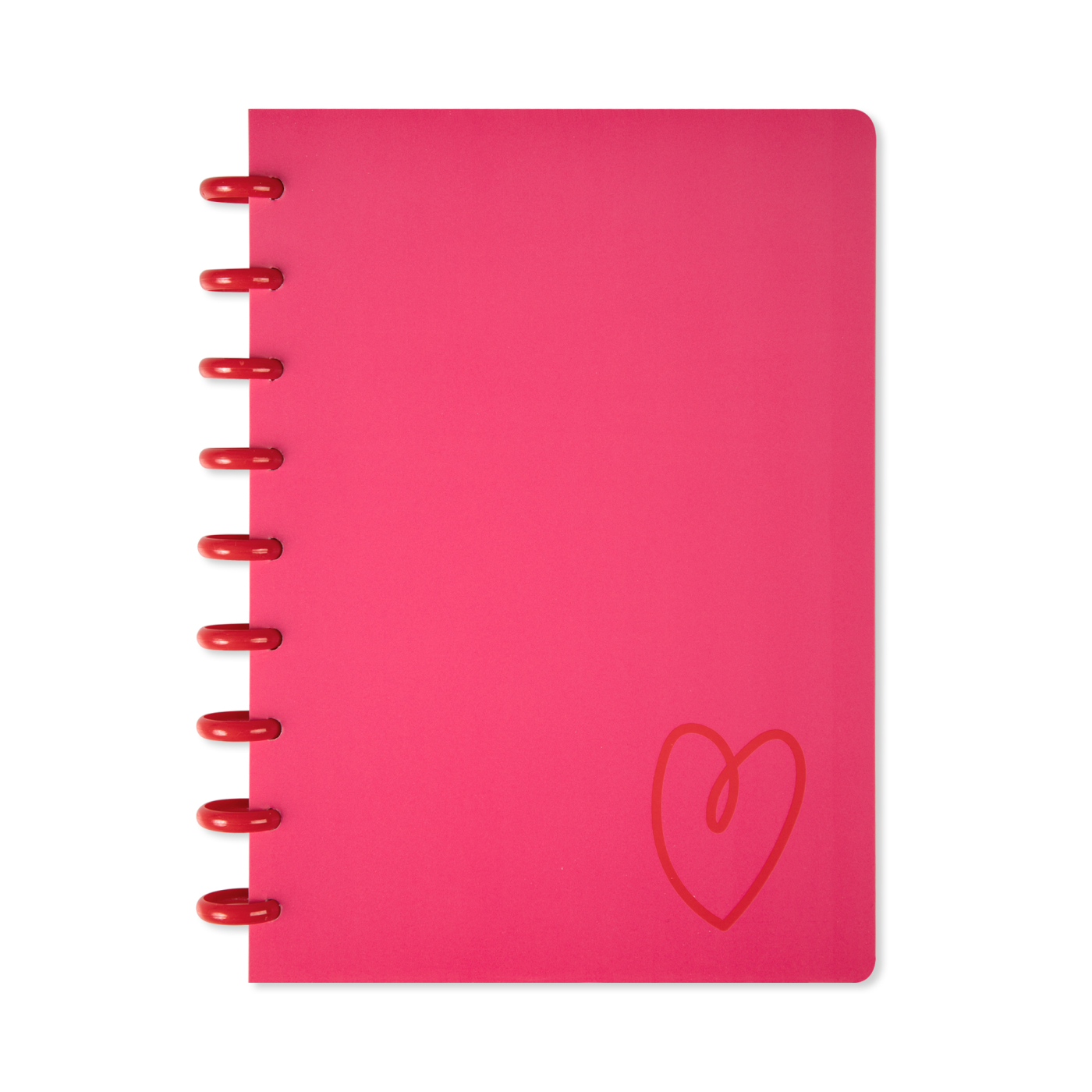 Růžový blok s červeným srdcem na obalu je opatřen kroužkovou diskovou vazbou a vhodný jako dárek na Valentýna. Uvnitř najdete linkované stránky, ideální na strukturované poznámky. Rozměry bloku: 18,5 × 23 × 1 cm