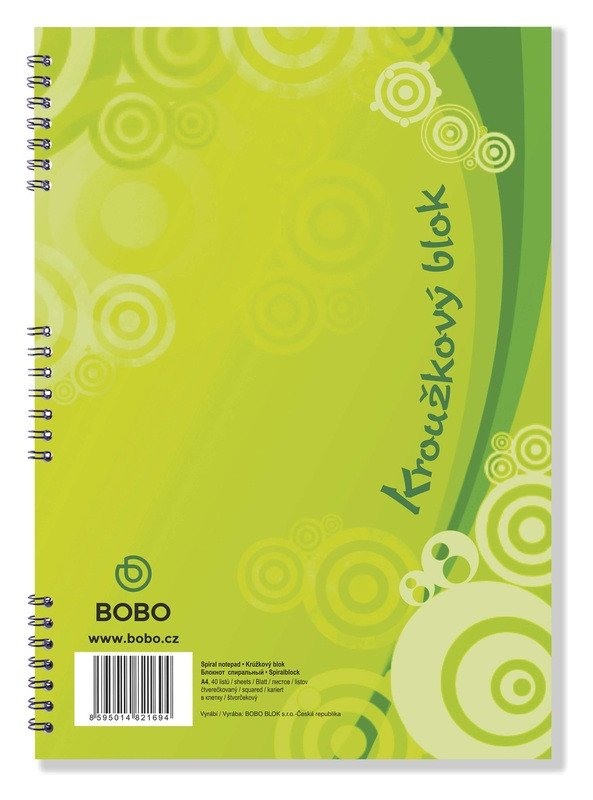 Klasický kroužkový blok ve formátu A4 obsahuje 40 čtverečkovaných listů. br brPoznámkový blok v moderním designu s boční kroužkovou vazbou obsahuje 40 čtverečkovaných listů z bezdřevého papíru. Kroužková spirála umožňuje snadné otáčení a odtrhávání stránek. Tento blok je ideální na školní i pracovní poznámky.