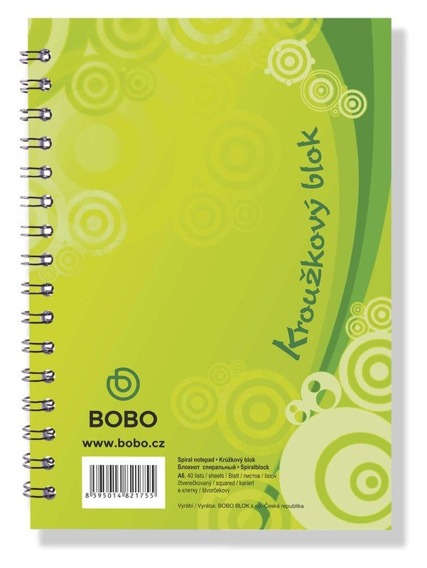 Klasický kroužkový blok ve formátu A6 obsahuje 40 čtverečkovaných listů. br brPoznámkový blok v moderním designu s boční kroužkovou vazbou obsahuje 40 čtverečkovaných listů z bezdřevého papíru. Kroužková spirála umožňuje snadné otáčení a odtrhávání stránek. Tento blok je ideální na školní i pracovní poznámky.