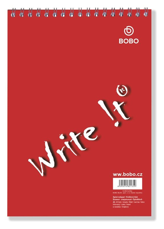 Poznámkový blok s horní kroužkovou vazbou obsahuje 40 linkovaných listů z bezdřevého papíru. br brTento blok se hodí na školní i pracovní poznámky. Horní vazba Twin Wire navíc umožňuje snadné otáčení a odtrhávání stránek, nepřekáží při psaní a je vhodná i pro leváky. br brBlok A5 br• Formát: A5 br• Lineatura: linkovaná br• Počet listů: 40 br• Papír: bezdřevý, 70g/m2 br• Vazba: kroužková, horní