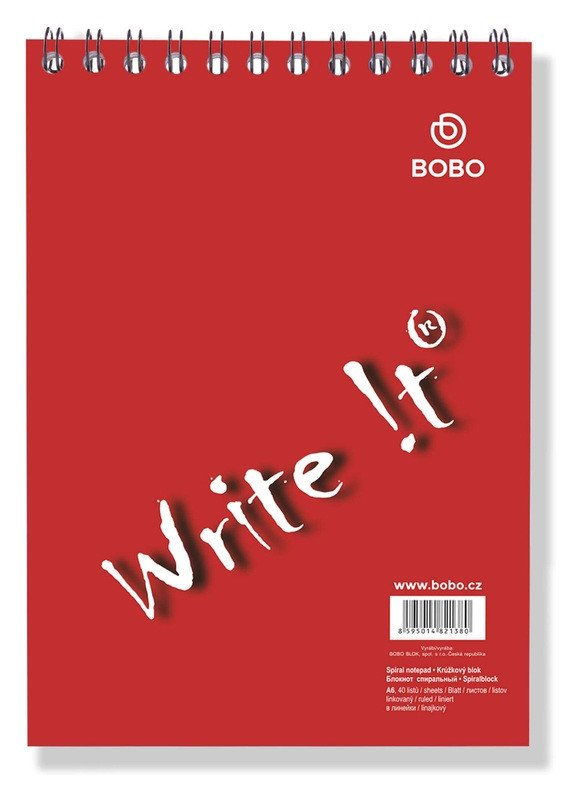 Poznámkový blok s horní kroužkovou vazbou obsahuje 40 linkovaných listů z bezdřevého papíru. br brTento blok se hodí na školní i pracovní poznámky. Horní vazba Twin Wire navíc umožňuje snadné otáčení a odtrhávání stránek, nepřekáží při psaní a je vhodná i pro leváky. br brBlok A6 br• Formát: A6 br• Lineatura: linkovaná br• Počet listů: 40 br• Papír: bezdřevý, 70g/m2 br• Vazba: kroužková, horní
