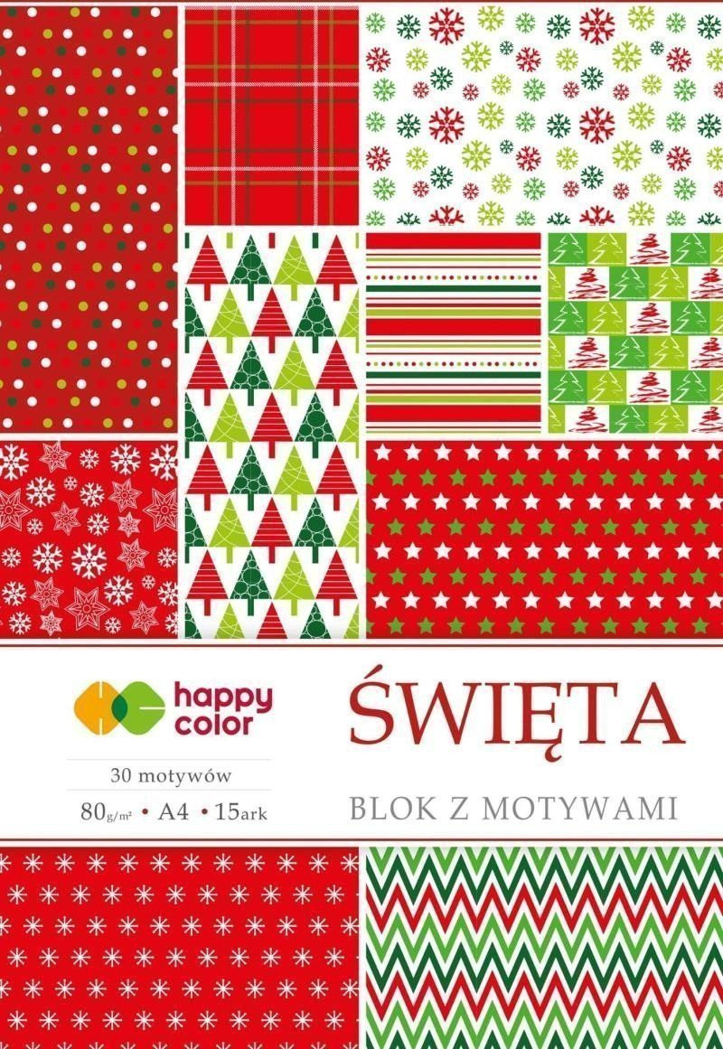 Blok s papíry s vánočním potiskem. V každém bloku je 15 jednostranně potištěných archů. Na každém archu je výběr dvou motivů z obrázku. Formát: A4 Gramáž: 80g