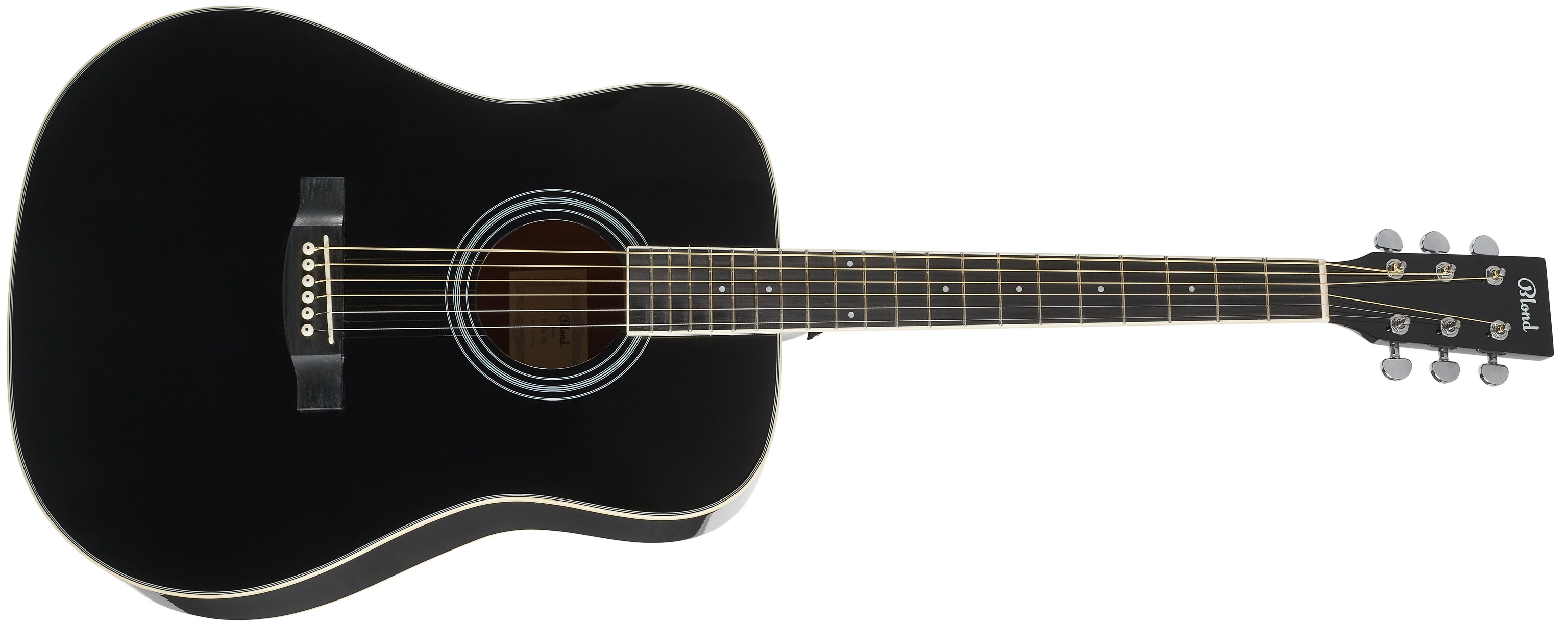 Akustická kytara Akustické kytary značky Blond jsou cenově dostupné nástroje vhodné pro začínající hudebníky. S jejich pomocí si osvojí základní techniky a dovednosti, navíc za cenu, která nijak nezatíží rodinný rozpočet. Blond D-OA BK je akustická kytara s populárním tělem typu Dreadnought. Nabízí přední desku zhotovenou z vrstveného smrku, zadní desku a luby z vrstveného sapele, mahagonový krk a kobylku a hmatník z moderního kompozitního materiálu. Struny