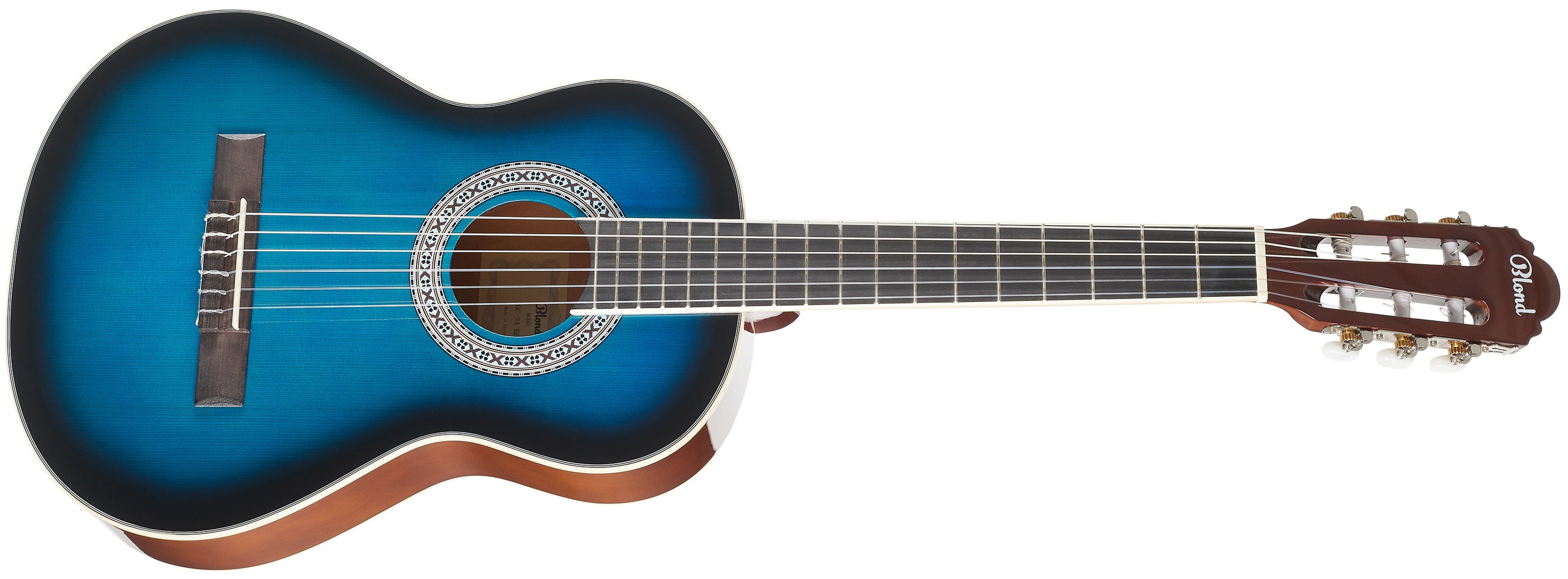 Dětská klasická kytara Klasické kytary značky Blond jsou cenově dostupné nástroje vhodné pro začínající hudebníky. S jejich pomocí si osvojí základní techniky a dovednosti, navíc za cenu, která nijak nezatíží rodinný rozpočet. Dětská klasická kytara Blond OC-34 BB v 3/4 velikosti nabízí tělo zhotovené z vrstveného smrku a lípy, krk ze dřeva okoumé a hmatník a kobylku z moderního kompozitního materiálu. Struny jsou přes plastový nultý pražec uchyceny v klasických chromovanýc